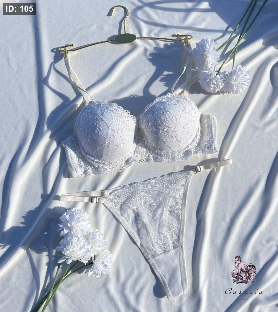 طقم دانتيل ابيض مورد مع بوش