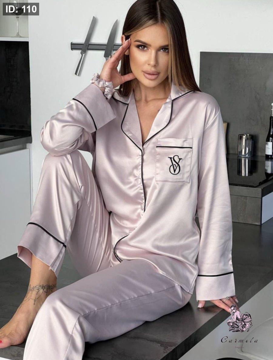 بيجاما victoria secret ستان ناعم لون زهر فاتح