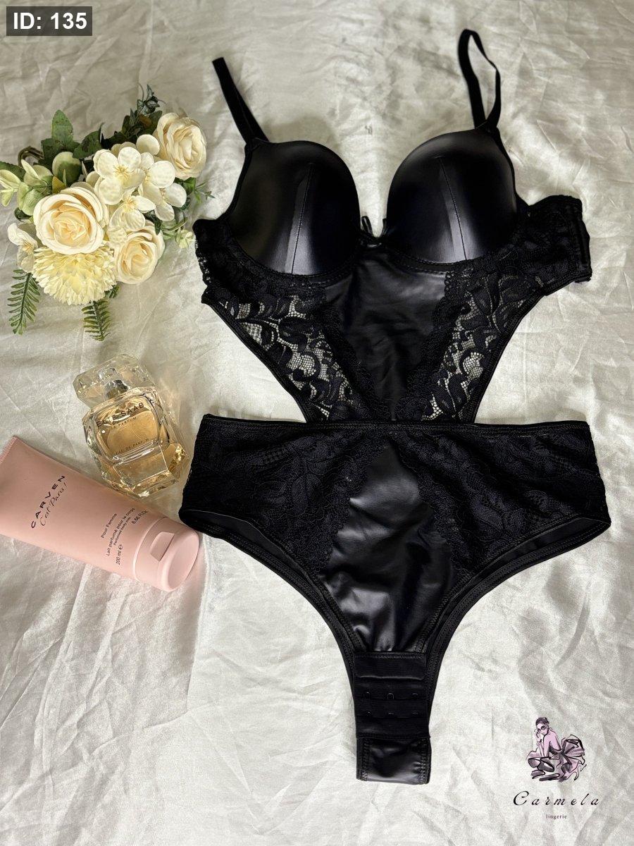Bodysuit دانتيل جلد اسود