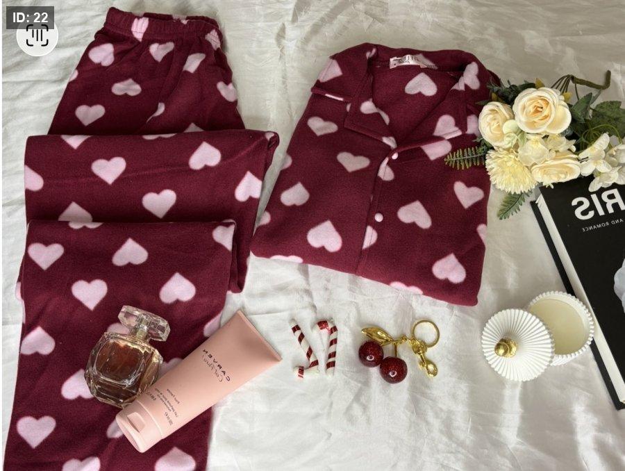 بيجاما فليز ناعم خمري قلب زهر