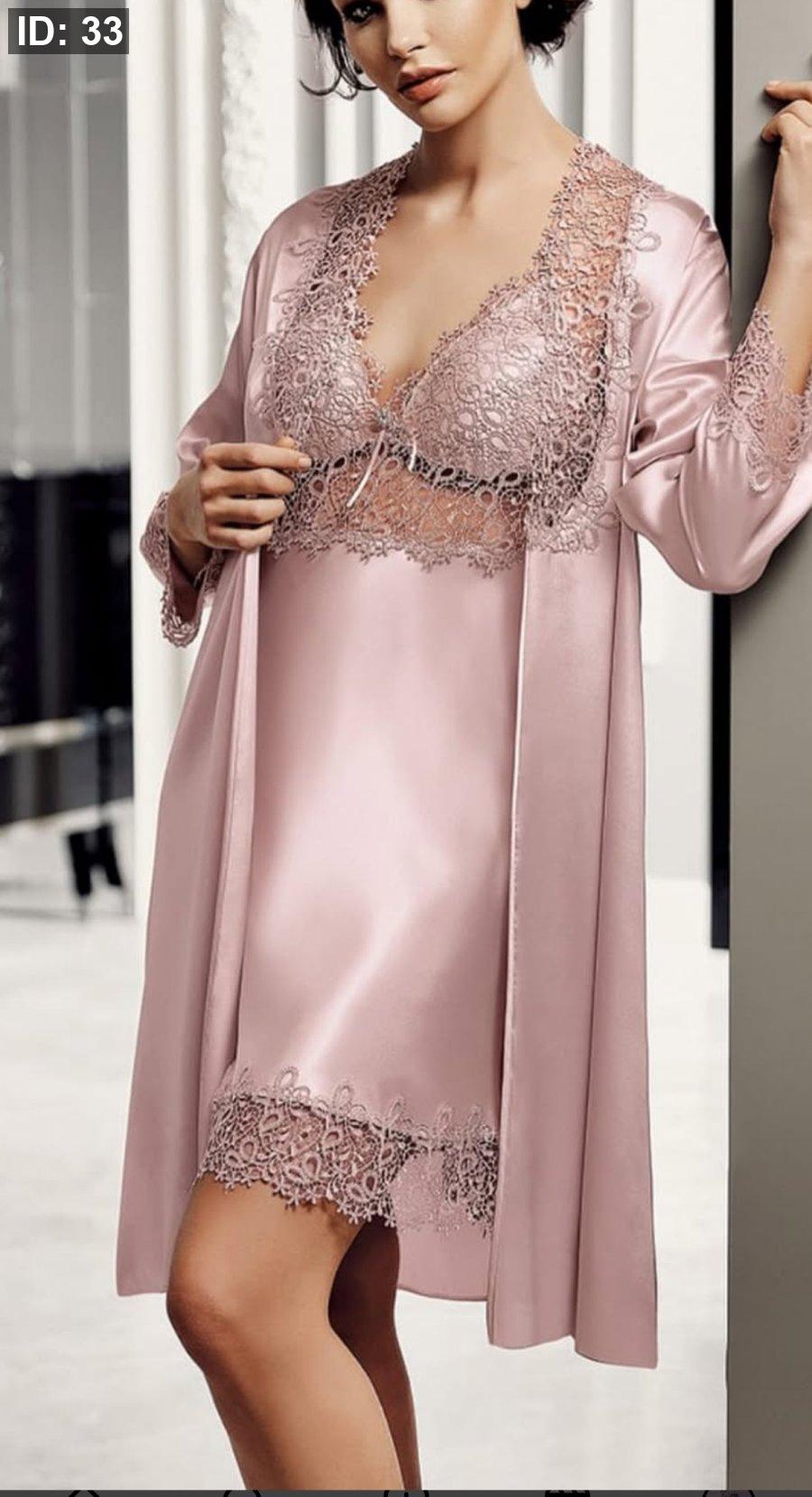 يشمل طقم ستان عرائسي مميز جدا قميص نوم وروب مع بيجاما شورت وشيال وبيجاما قميص وبنطلون