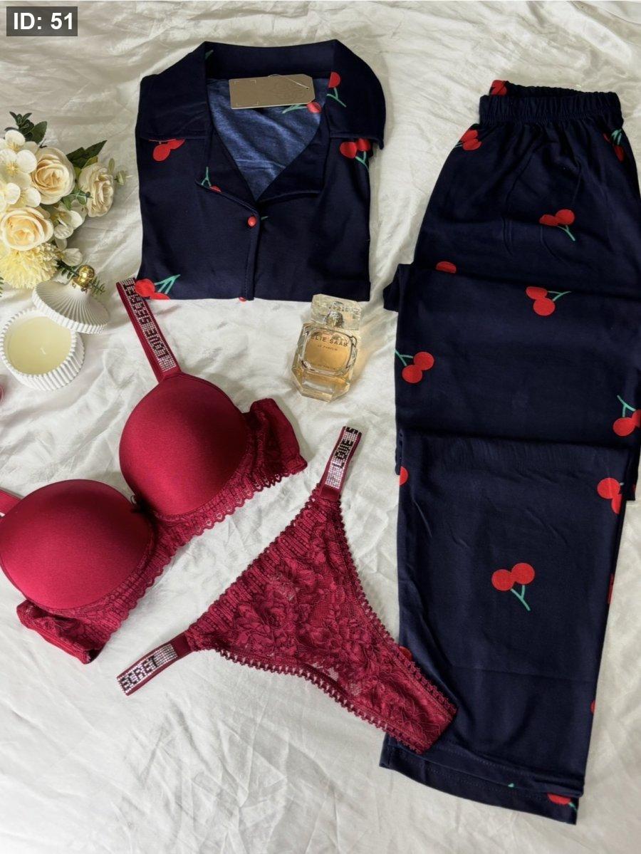 بيجاما فليز ناعم كحلي مع كرز احمر