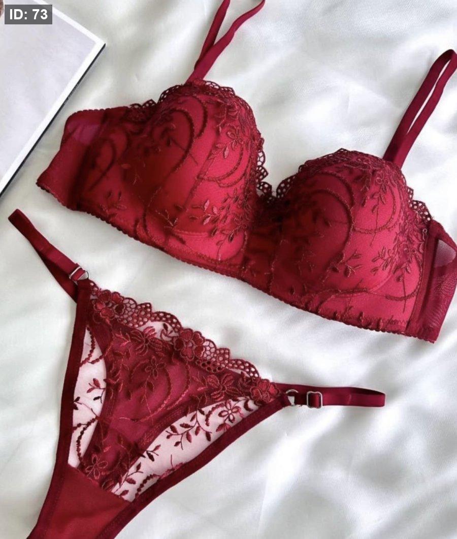 طقم دانتيل احمر مورد بدون بوش